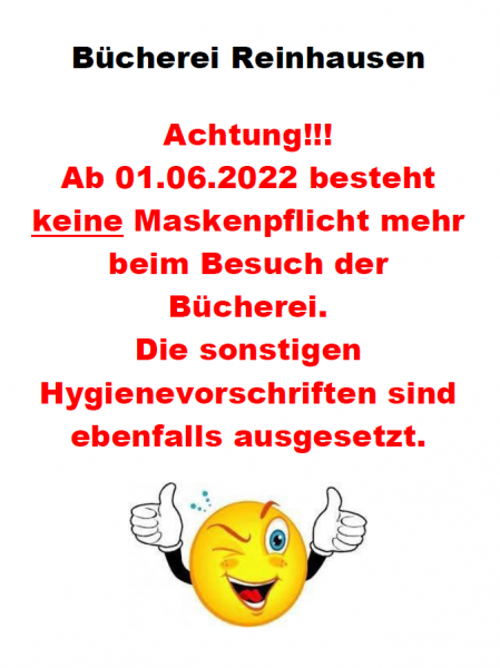Bücherei Reinhausen – keine Maske mehr