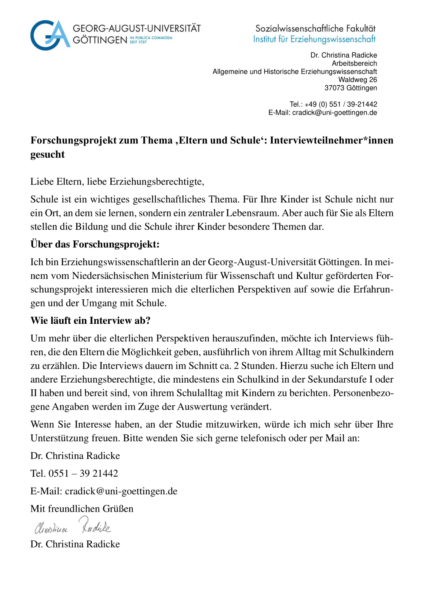 Forschungsprojekt zum Thema ‚Eltern und Schule‘: Interviewteilnehmer*innen gesucht