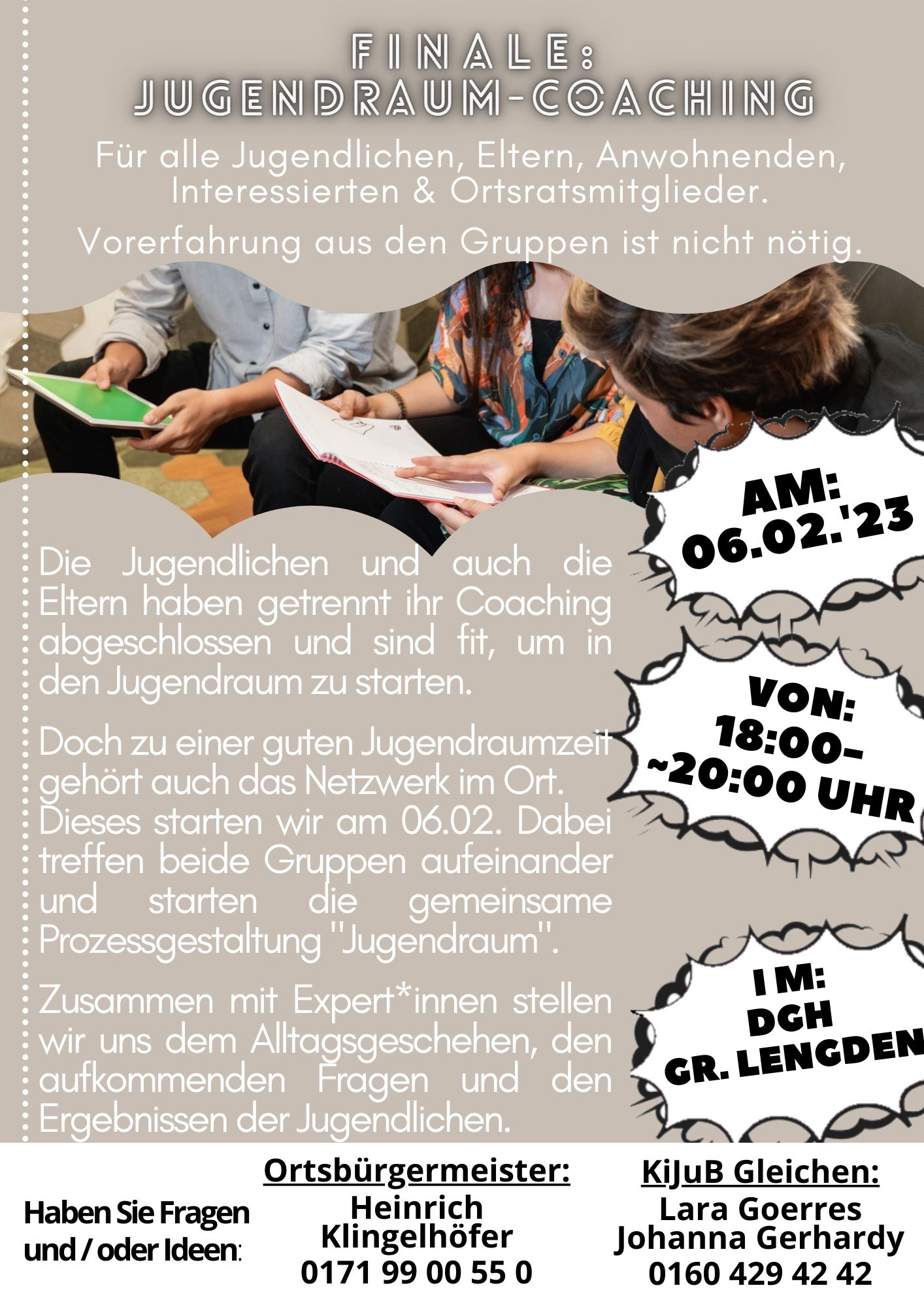 Alle Jugendlichen, Eltern, Anwohnenden, Interessierten & Ortsratsmitglieder aus Groß Lengden sind herzlich eingeladen.