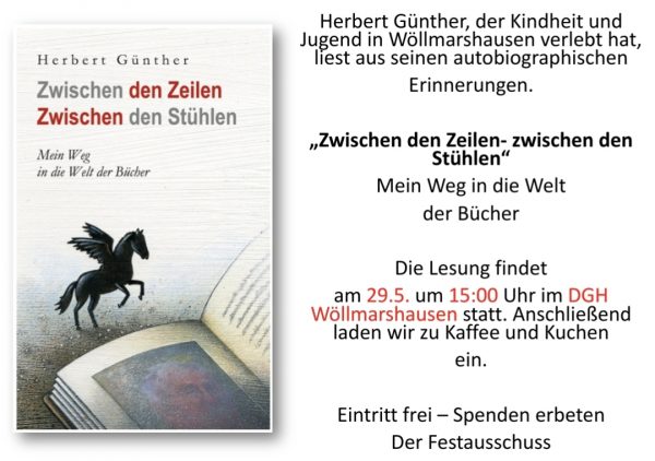 Wir laden Sie herzlich ein zur Lesung mit Herbert Günther.