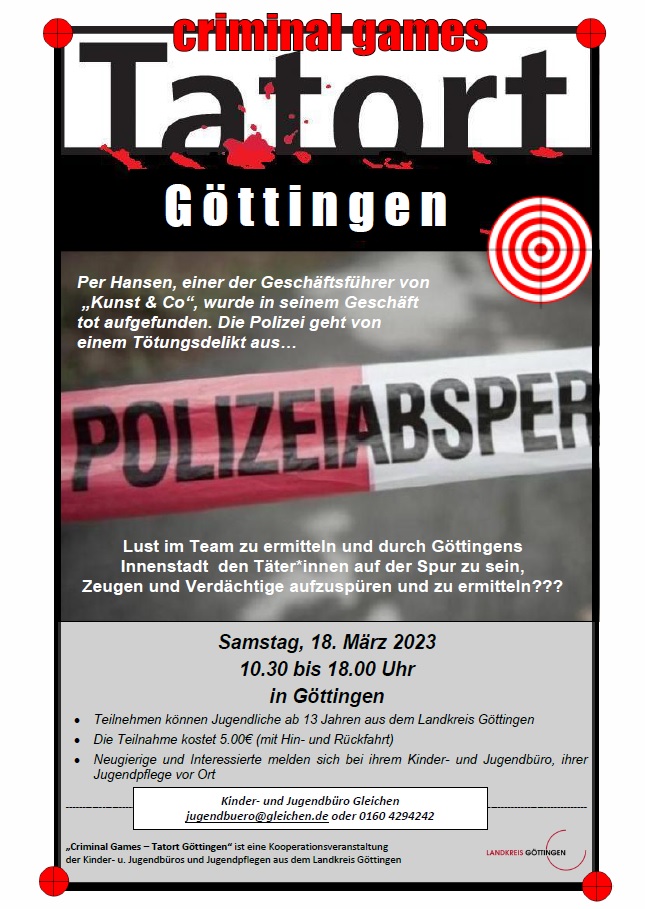 Jugendveranstaltung Tatort in Göttingen – Criminal Games am 18.03.2023