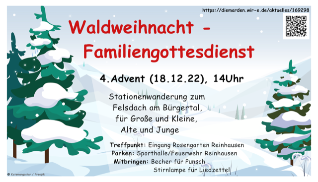 Am 18.12.2022 um 14 Uhr beginnt ein Familiengottesdienst in Reinhausen – Treffpunkt am Rosengarten!
