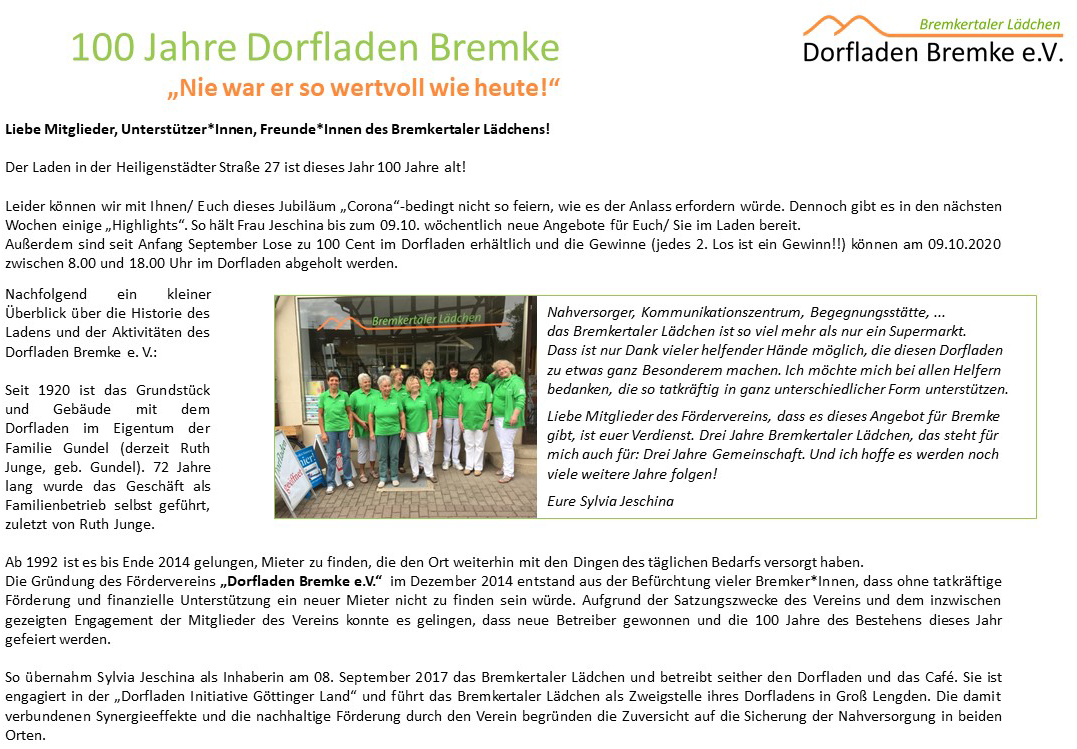 100 Jahre Dorfladen – Mitgliederbrief –