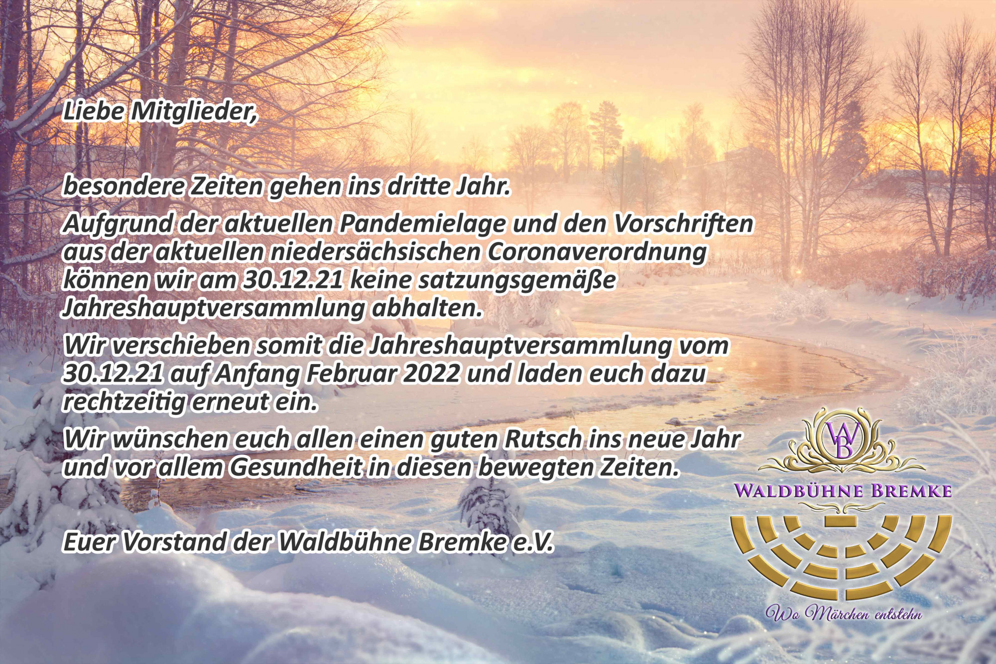 Wir verschieben somit die Jahreshauptversammlung vom 30.12.21