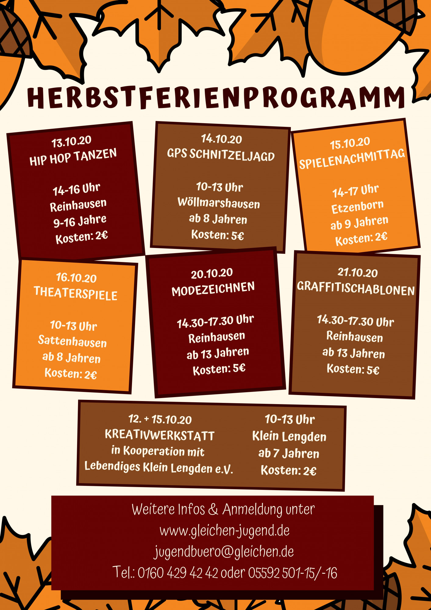 Das Herbstferienprogramm 2020 des Jugendbüro Gleichens ist herausgekommen!