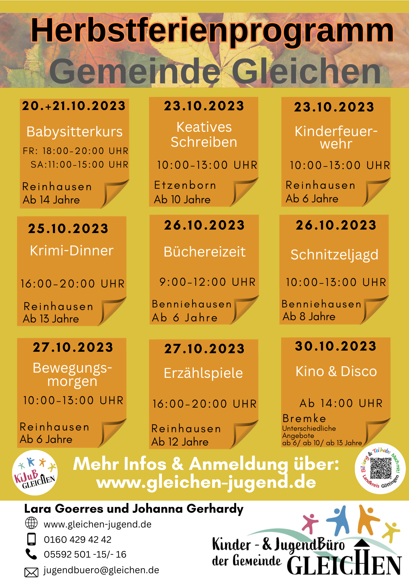 Die Anmeldungen für das Herbstferienprogramm sind gestartet! Jetzt anmelden unter www.gleichen-jugend.de.