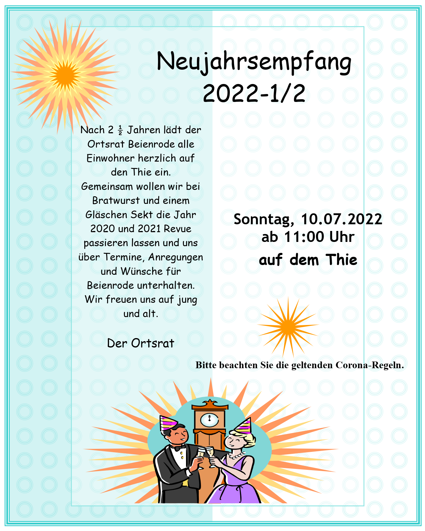Um eine Anmeldung mit Personenzahl bei der Ortsbürgermeisterin Andrea Kerll wird gebeten. Vielen Dank!