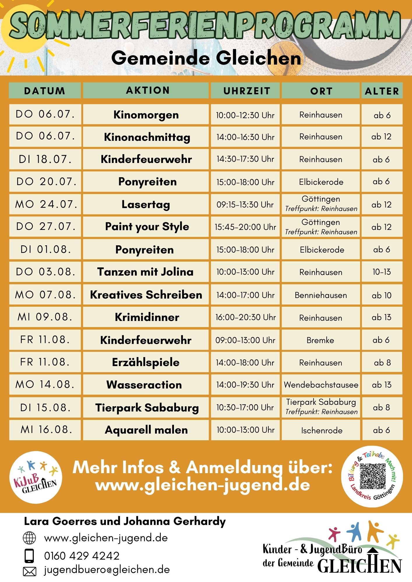 Die Anmeldungen für das Sommerferienprogramm sind gestartet! Jetzt anmelden unter www.gleichen-jugend.de.